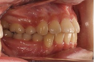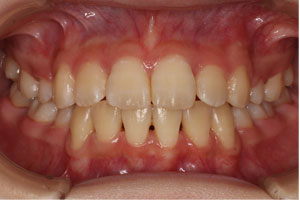 こちらの初診(女性)の患者さんは、上突咬合 / 叢生歯列の症状がありました。