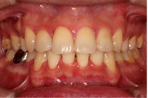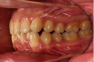 こちらの初診(男性)の患者さんは、叢生歯列 / 偏位咬合の症状がありました。